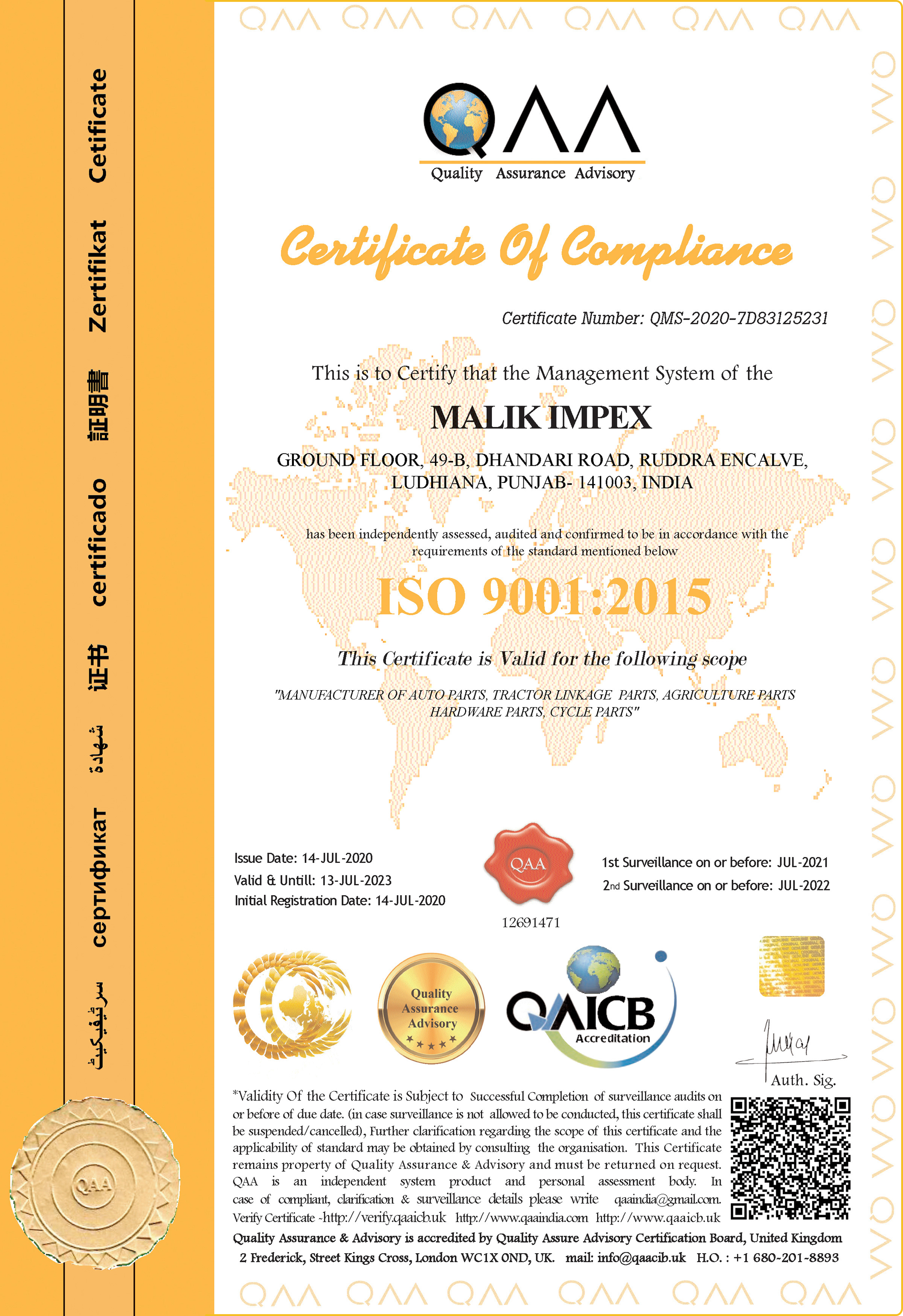 We “ Malik Impex ” are a Dependable and Famous Manufacturer and Trader of a Broad Range of Clevis Pins, R Pins, SS Nut , etc. We Provide These Products in Diverse Specifications to Attain the Complete Satisfaction of the Clients. We Are a Sole Proprietorship Company Which is Located in Ludhiana , Punjab, India. Under the Supervision of “ Mr. Shankar Malik” (Proprietor) , We Have Gained Huge Clientele in Our Country.